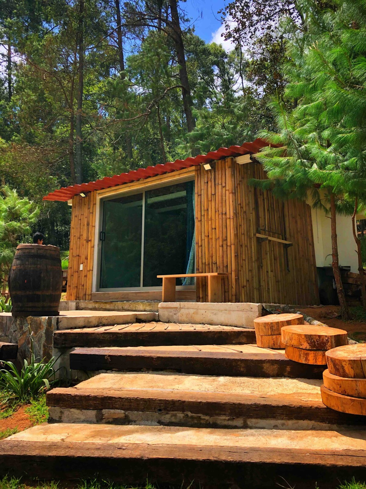 Kom och bo hos oss på El Gato Glamping. Du kan tillbringa en underbar natt med din partner bara några steg från La Comarca Minera (15 minuter från Huasca centrum) där du kommer att kunna få fantastisk utsikt över los prismas basálticos de aguacatitla formade för mer än 2,5 miljoner år sedan, du kommer att höra fåglarna sjunga vid soluppgång och solnedgång, njuta av naturen och dess exceptionella lugn utan att lägga åt sidan de varor vi alla är vana vid i staden.