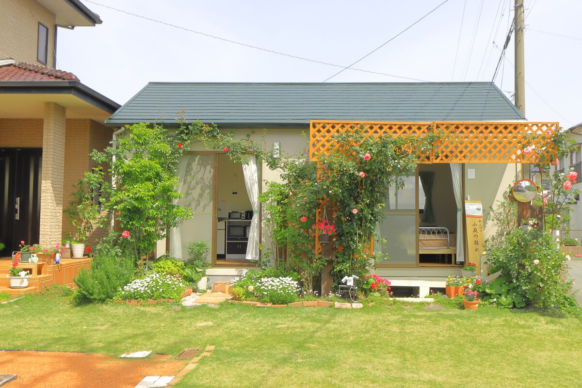Gröna parker så långt ögat kan se Vår, sommar, höst och säsongsbetonade växter och landskap Ett hus endast för en grupp per dag. Cirka 15 minuters bilresa till Kumamoto City Center och Kumamoto Castle. Populära semesterorter, Aso och Amakusa ligger också ungefär en timmes bilresa bort. Tillträdet är också på ett utmärkt läge. Med dina nära och kära, din familj, din hund, Det är ett utrymme där du kan koppla av med dina vänner. På nära håll finns populära lokala Kenmon-helgedomar. Suizenji Temple ligger också inom gångavstånd. Du kan också gå till världens mest populära staty i ett stycke. (Kumamoto prefekturkansli Promenade Rufi Statue) Andra populära kaféer, restauranger, izakayas och mycket mer Det finns många butiker i närheten, liksom för gourmet människor!! Det finns också en cykeluthyrning i parken precis framför huset. Du kan också njuta av cykling medan du njuter av naturen. Och på kaféet bredvid, Populär fruktparfait från hela landet Matcha latte, etc. kan avnjutas exklusivt för gäster. Jag är också blomsterkonstnär och tebryggare. Värd och hans fru upplevelseklass i teceremoni, skogsbukettillverkning, osv. Olika populära workshops Alternativ Du kan njuta av det genom att boka i förväg.