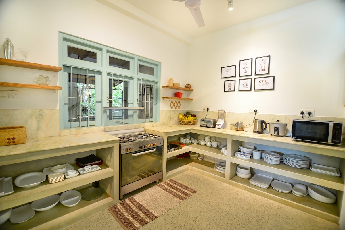 Colonial Charm, Private Paradise: Omfamna naturens symfoni i vår avskilda bungalow. Dyk in i din snidade stengpool, lullad av kaskadvatten. Solljus dansar på gamla väggar, lysande minimalistiska paradis. Moderna bekvämligheter viskar, naturen vrålar. Njut av livliga ayurvediska måltider från vår trädgård, ett firande av hållbarhet. Återförenas på den soldränkta verandan och andas in palmerna. Miljövänlig oas, minnen föddes. Fly till