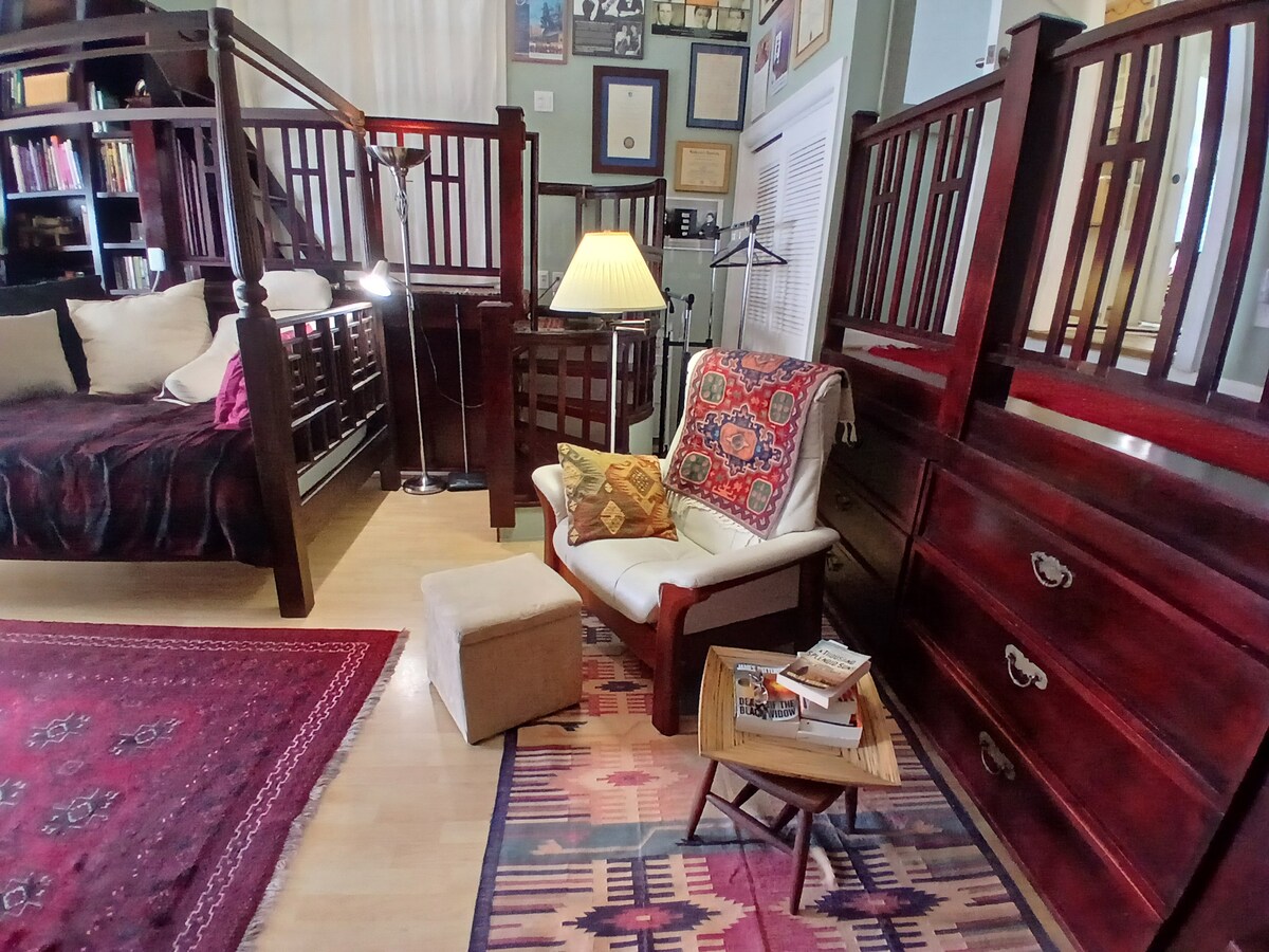 Central och fridfull promenad till transit och restauranger