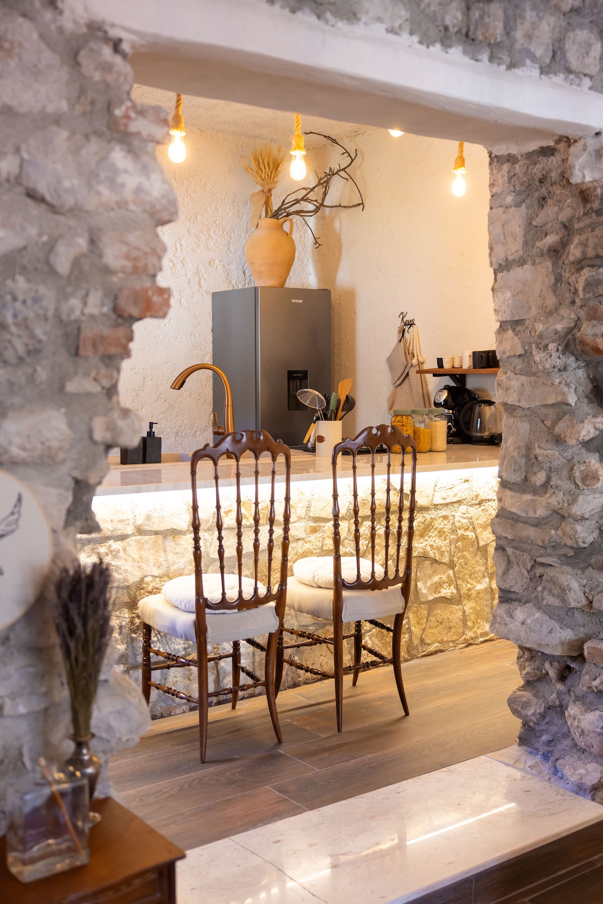 Charmig villa omgiven av grönska, omgiven av berg och belägen i ett strategiskt läge. Den ligger bara några minuter från Llogaras nationalpark och bara 15 minuters bilresa från några av Albaniens vackraste stränder. Det är den perfekta platsen för att ta en paus från det hektiska livet och njuta av naturens lugn. I närheten finns en marknad, en källa med färskt vatten och en av de historiska restaurangerna i området där du kan prova traditionell albansk mat.