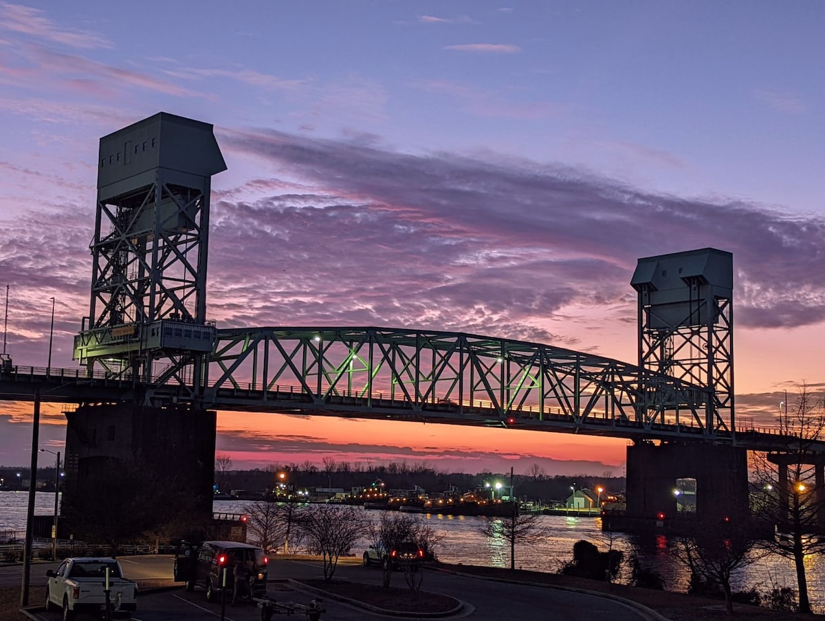 Detta är verkligen det BÄSTA läget i centrala Wilmington! Din balkong ligger direkt över River Walk med en enorm fri utsikt över floden och vackra solnedgångar! En parkeringsplats, dubbelsäng och multi jet spa dusch ingår! Detta ljusa, nyrenoverade utrymme är unikt på grund av den enorma balkongen med utsikt över Cape Fear River och uppmärksamheten på detaljer som kommer att göra din vistelse perfekt! Vi använder exklusiva möbler med extra detaljer för att göra din vistelse oförglömlig!