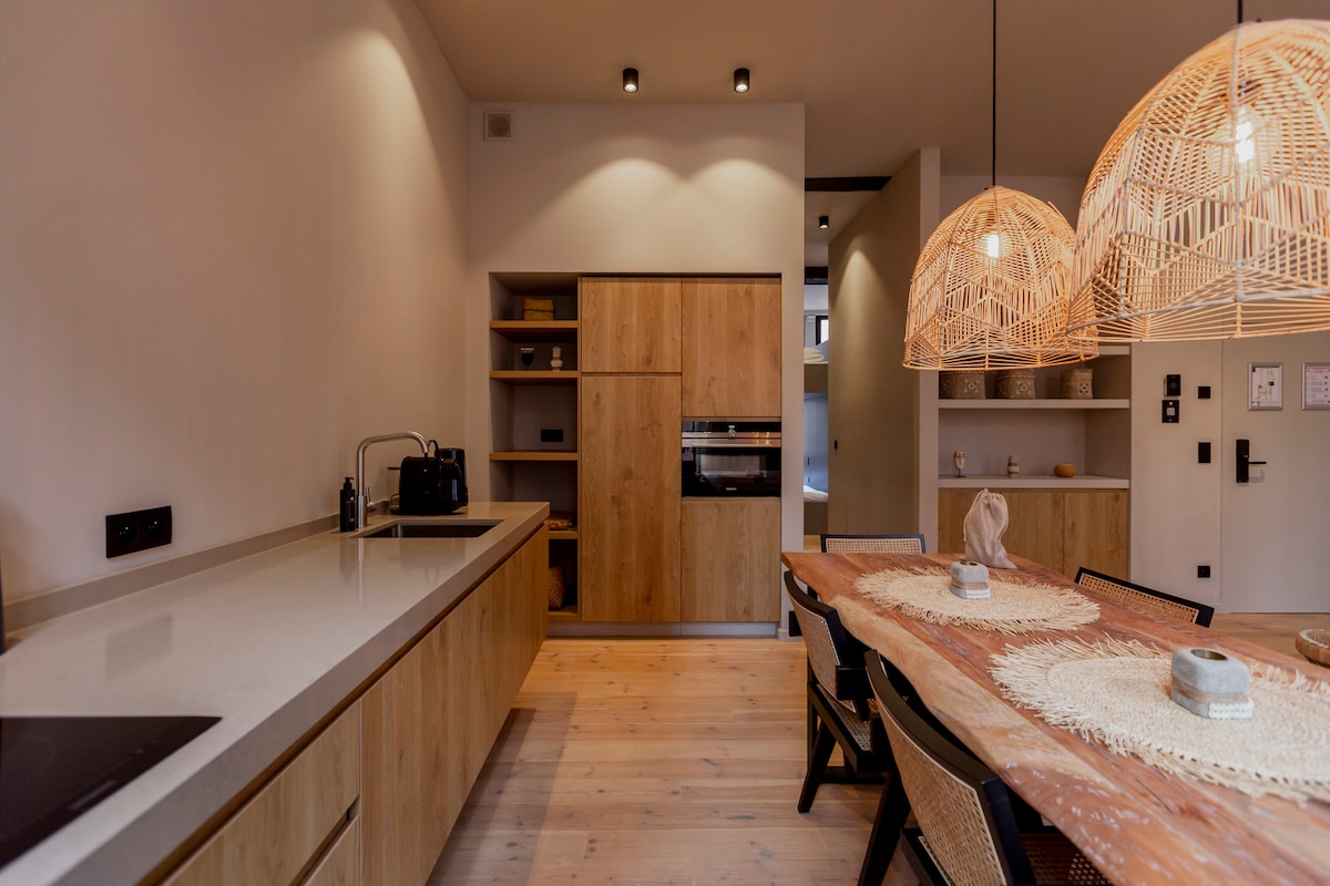 Fly till en fridfull fristad i hjärtat av Antwerpens charmiga stadskärna, med: - Detta 200 m2 stora loft ligger inbäddat på bottenvåningen i de historiska resterna av ett kloster från 1400-talet! - En modern oas med 3BR och 3BA, ett fullt utrustat kök, mysigt vardagsrum och vardagsrum. - Njut av höghastighets WiFi och varva ner med Smart TV eller på terrassen med utsikt över trädgården. Det bästa läget erbjuder enkel tillgång till det livliga stadens arv, museer, restauranger och butiker utan krångel.