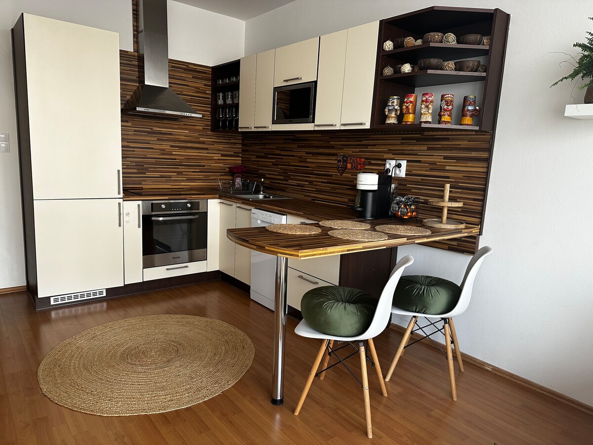 Välkommen till min vackra lägenhet. Du har just hittat det bästa boendet för din vistelse i České Budějovice. Min lägenhet har allt du behöver för din bekväma vistelse, sovrum, badrum, möblerat kök och super läge. Lägenheten ligger i en lugn del av centrum av České Budějovice , 5 minuters promenad från Přemysl Otakar II-torget. På avstånd av 200m finns en stadspark med bänkar och en fontän. Lägenhet 2+kk är luftig, orienterad mot väster. Boendet passar utmärkt för par, ensamma resenärer och arbetsresor.