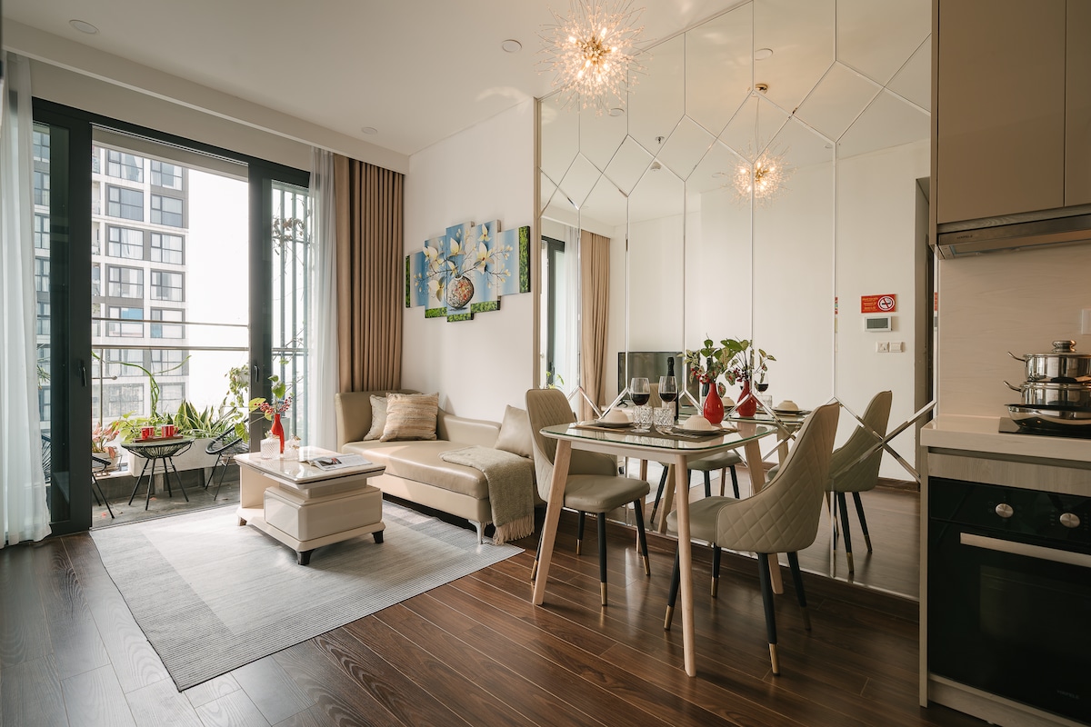 Exklusiv lägenhet på Vinhomes Smart City med fullständiga bekvämligheter för par, turister eller affärsresenärer. Här kommer du att vila och koppla av i ett fridfullt, lyxigt utrymme. Allmännyttiga tjänster inkluderar: 1. Simbassäng inomhus 2. Utomhuspool (säsongsbetonad) 3. Gym 4. Arbetsutrymme 5. Shopping och underhållning på Vincom Mega Mall. 6. Incheckning och ta virtuella foton i Japanese Garden 7. Promenera mellan det blå havet och vit sand mitt i Hanoi. 8. Grillfest