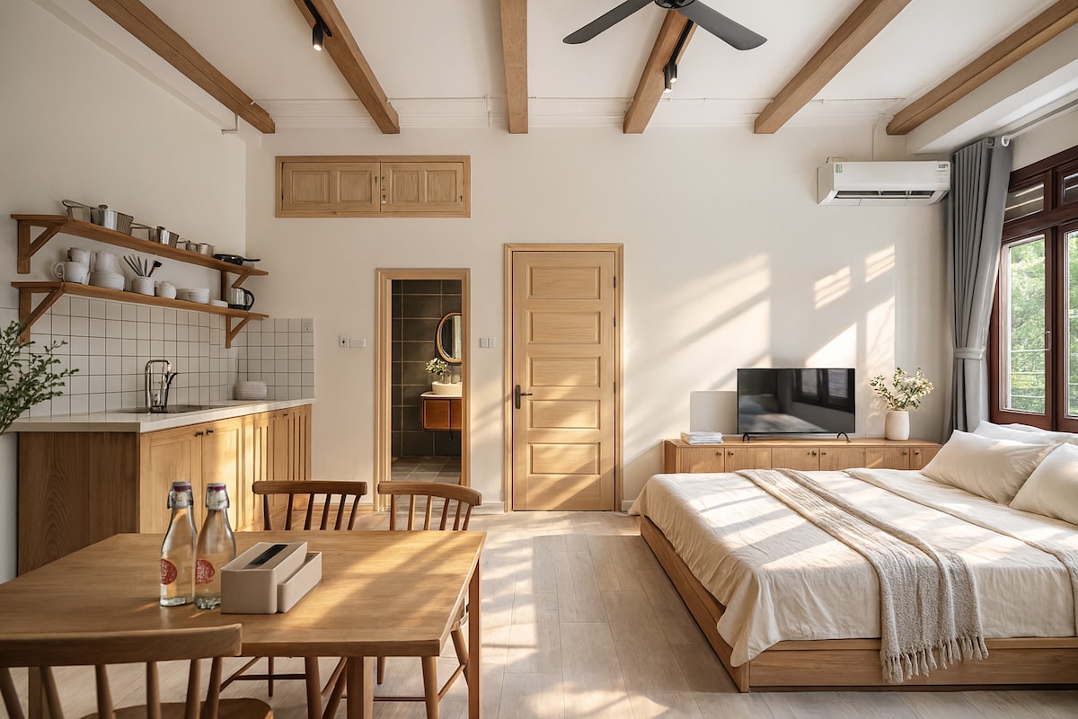 Välkommen till Ô MAI Homestay, där modern elegans möter tidlös charm mitt i Hanoi. Vår nyrenoverade lägenhet i Japandi-stil på 5:e våningen i en historisk byggnad (ingen hiss) erbjuder en fräsch, kyld och mysig atmosfär för upp till 4 gäster. Bara några minuters promenad från Hoan Kiem Lake, vår homestay bjuder dig att uppleva äktheten i en lokal byggnad — ren, säker och bevakad dygnet runt. INGEN HISS! Inga problem! Hjälp med ditt bagage är bara en förfrågan bort.