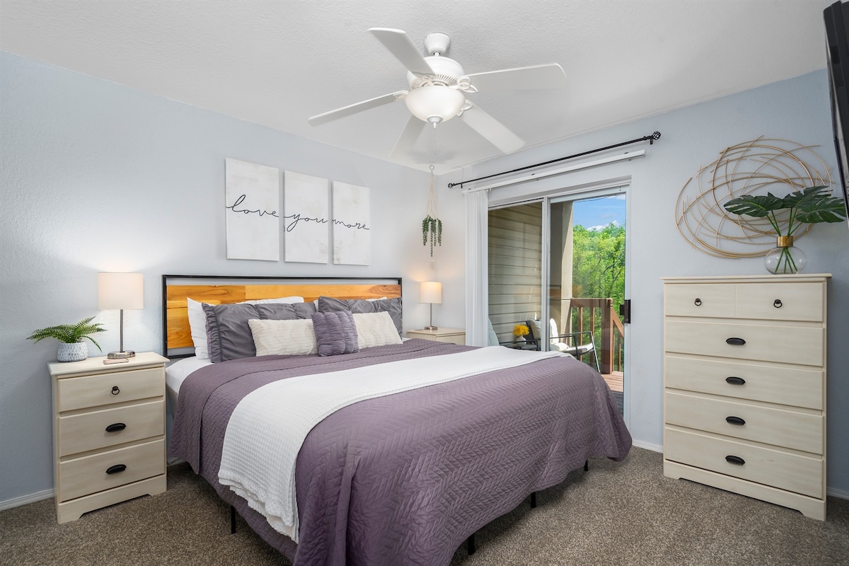 Historiska Eureka Springs besök, bo på Table Rock Lake bredvid Little Golden Gate-bron! En kort underbar 6 mil/14 minuters bilresa från Eureka Springs centrum. Enkel dagsutflykt, men du får bo på Lakefront Private 2 Bedroom bredvid Eureka Beaver Lodge. Den massiva privata endast till din enhet vid sjön med ett lusthus kommer att få dig att koppla av med stil medan du ser båtarna passera. Lägenheten har renoverats helt inifrån och ut 2021. Snabbt WiFi! 600 räkna sängkläder.