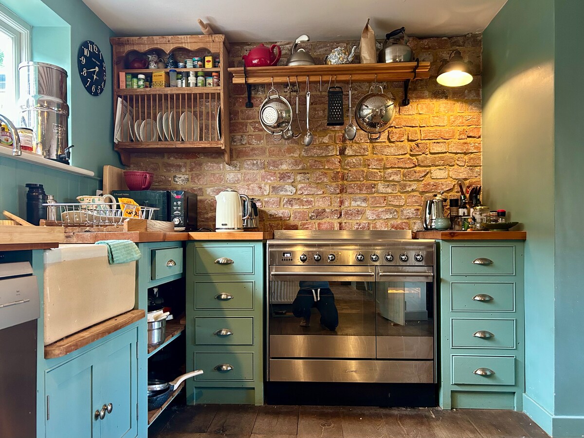 Panoramiska sandstränder, kvalitetsrestauranger/pubar/kaféer. Promenader och fågelskådning i området med enastående naturlig skönhet. Mysig liten stuga med 2 sovrum i georgianskt rött tegel och flinta. 75 m2. Rymmer 4. 1 dubbelsäng, 1 bekväm våningssäng. 2 parkeringsplatser. Inhägnad hundsäker trädgård. 5 min till Burnham Market och kusten. Precis på huvudvägen genom Creake, 2 minuters promenad till den fantastiska puben Jolly Farmers öppet onsdag-söndag. Vacker kyrka, Creake Abbey café/bondemarknad. Holkham, Brancaster, Wells ligger utanför dörren.