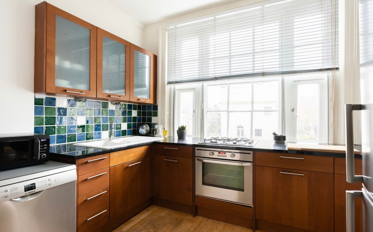 Hem till Robbie Williams, David Beckham, Simon Cowell, Jimmy Page, Lewis Hamilton och många fler kändisar, Holland Park är ett bostadsområde mellan turistiska Chelsea, South Kensington och Nothing Hill. Bra förbindelser med flygplatserna Heathrow och Gatwick, buss- och tunnelbanelinjer. Ditt boende kommer att vara en rymlig lägenhet på andra våningen (översta våningen), full av ljus, i en typisk viktoriansk vit-stuckbyggnad. Det fulla köket, vardagsrummet och badrummet är stora och sovrummet är lugnt, mot trädgården.