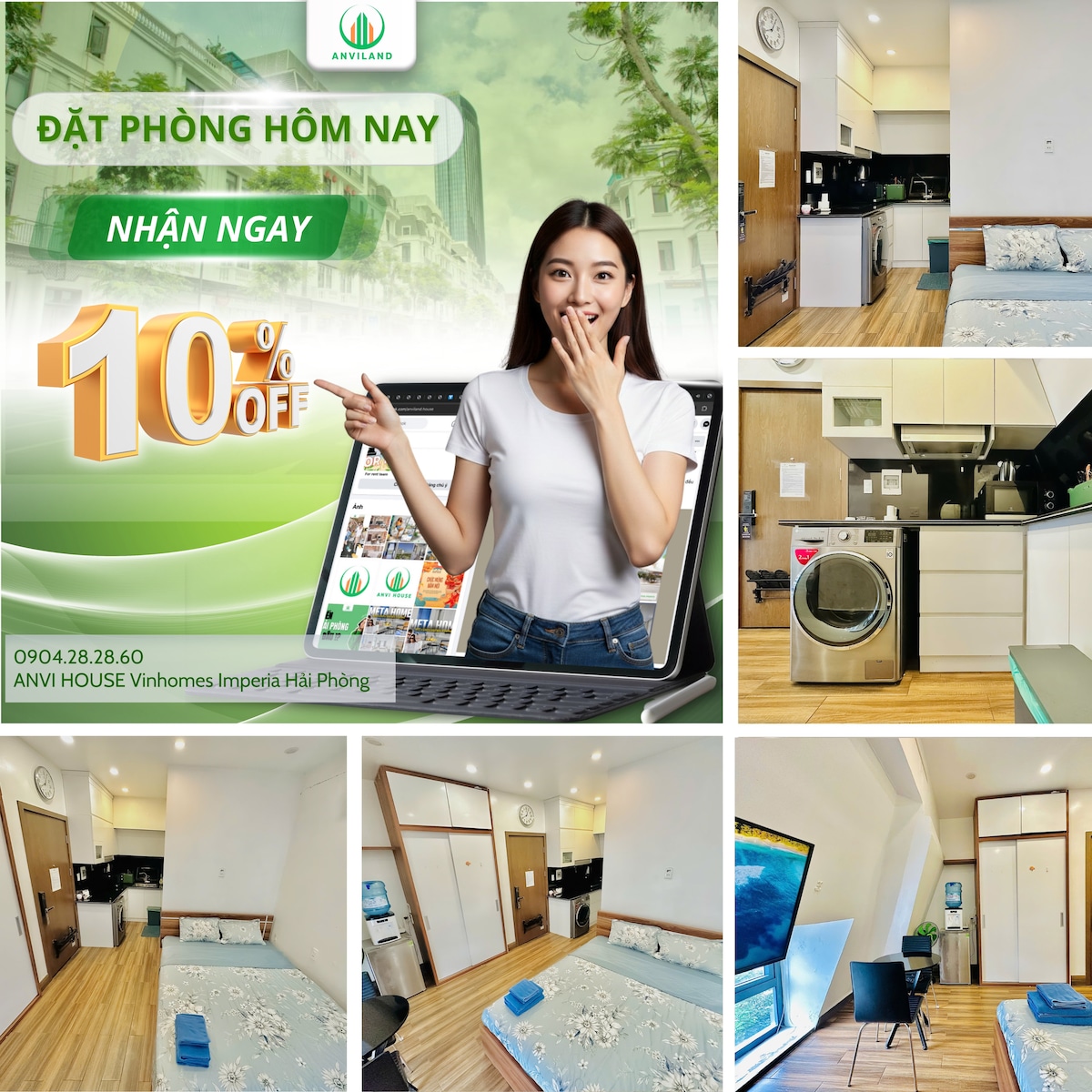 ✨ Anvi House – Modern serviced apartment at Vinhomes Imperia! ✨ Luxury serviced apartment, fully equipped: Smart TV, air conditioner, refrigerator, microwave, washing machine, high-speed internet… Just a few steps away, you will enjoy the four-season swimming pool, golf course, tennis court, children's playground, WinMart supermarket, green park, fountain… Comfortable and relaxing living space right in the city center! 📌 Book now to experience the class!