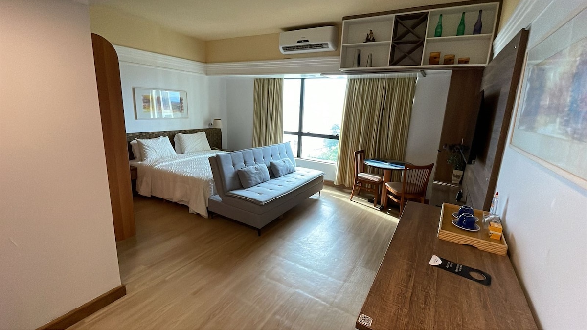 Bo i en modern lägenhet, med en ren design och miljöer utformade för att erbjuda praktiskhet och komfort. Här hittar du: • Bekväm queen-size-säng • Utrustat kök. Utsikt mot flod • Luftkonditionering och snabbt wifi • Smart-tv • Byggnadskonstruktion med [pool/gym/bastu/parkering/reception dygnet runt] Perfekt för affärs- eller fritidsresor, med strategiskt läge, nära shopping, huvudstranden, restaurang och flygplats