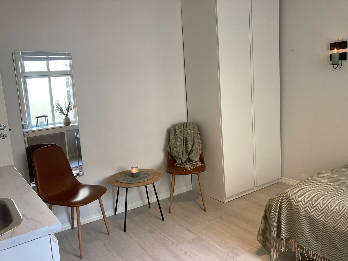 Nyoppusset hybel. Den har alla faciliteter en trenger för et hyggelig opphold i Stavanger. Huset är från 1875 och är en del av den gamla träbebyggelsen i Stavanger. Ny studiolägenhet i traditionellt gammalt trähus. Mysigt men modernt, mycket nära stadens centrum och gamla stan. 260 kvm / 24 kvm med;badrum och öppet kök och vardagsrum/sovrum. 3-5 minuters promenad till hjärtat av Stavanger.
