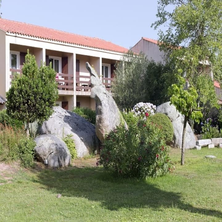 Eller från södra Korsika: Från Ajaccio eller Figari, vid ingången till Porto-Vecchio följ vägbeskrivningen "Bastia" och vid den andra rondellen sväng vänster mot D659 (Arca Pianelli). San Giovanni Hotel ligger 1 km bort till vänster.