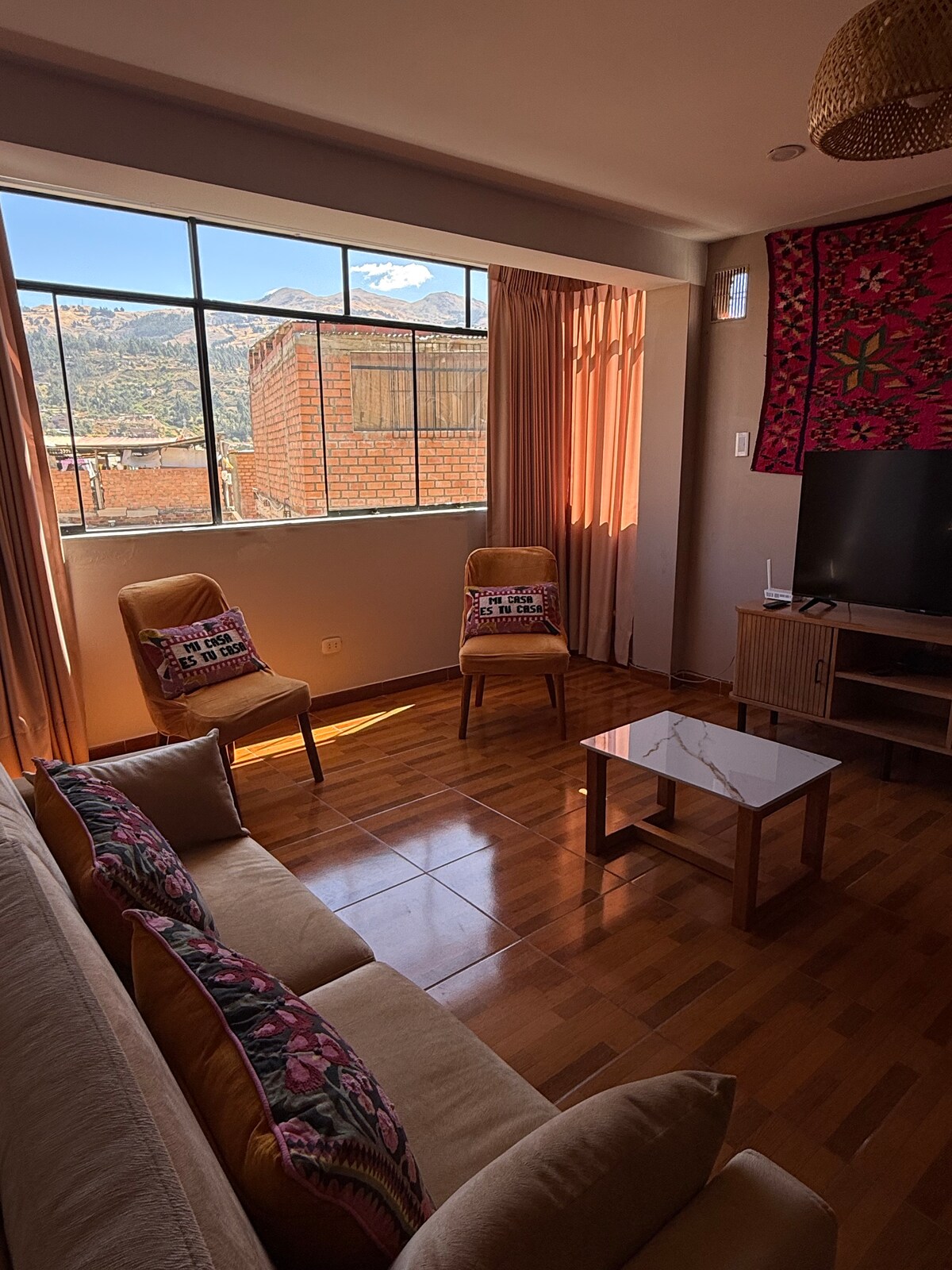 Från fönstren i vårt vardagsrum och huvudrum kan du njuta av en unik upplevelse med utsikt över Huarazs soluppgångar och solnedgångar, inramad av den snötäckta Huascarán och Cordillera Blanca. Vår centralt belägna lägenhet i Huaraz erbjuder en mysig, säker och mycket ren vistelse, perfekt för att koppla av efter att ha utforskat staden och dess naturliga underverk. Exklusivt för dig, med uppmärksam service från vår vänliga personal. Funktioner - Panoramaterrass - Privat garage - Gratis tvättmaskin
