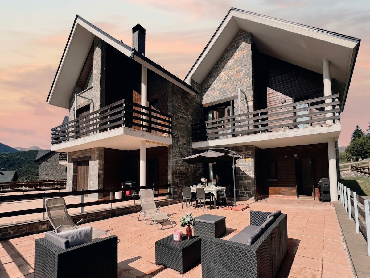Välkommen till din boutique retreat i Formigal, i den charmiga stenby Sallent de Gállego, ett hem fyllt med ljus, lugn och skönhet. Vakna upp till utsikt över bergen, koppla av i terrassens bubbelpool och samlas vid den elektriska eldstaden i ett harmoniskt vardagsrum. Det moderna köket inbjuder till kontakt, sovrummen erbjuder djup vila och varje detalj är utformad för komfort, värme och flöde. En plats skapad så att du verkligen kan koppla av och känna dig som hemma.