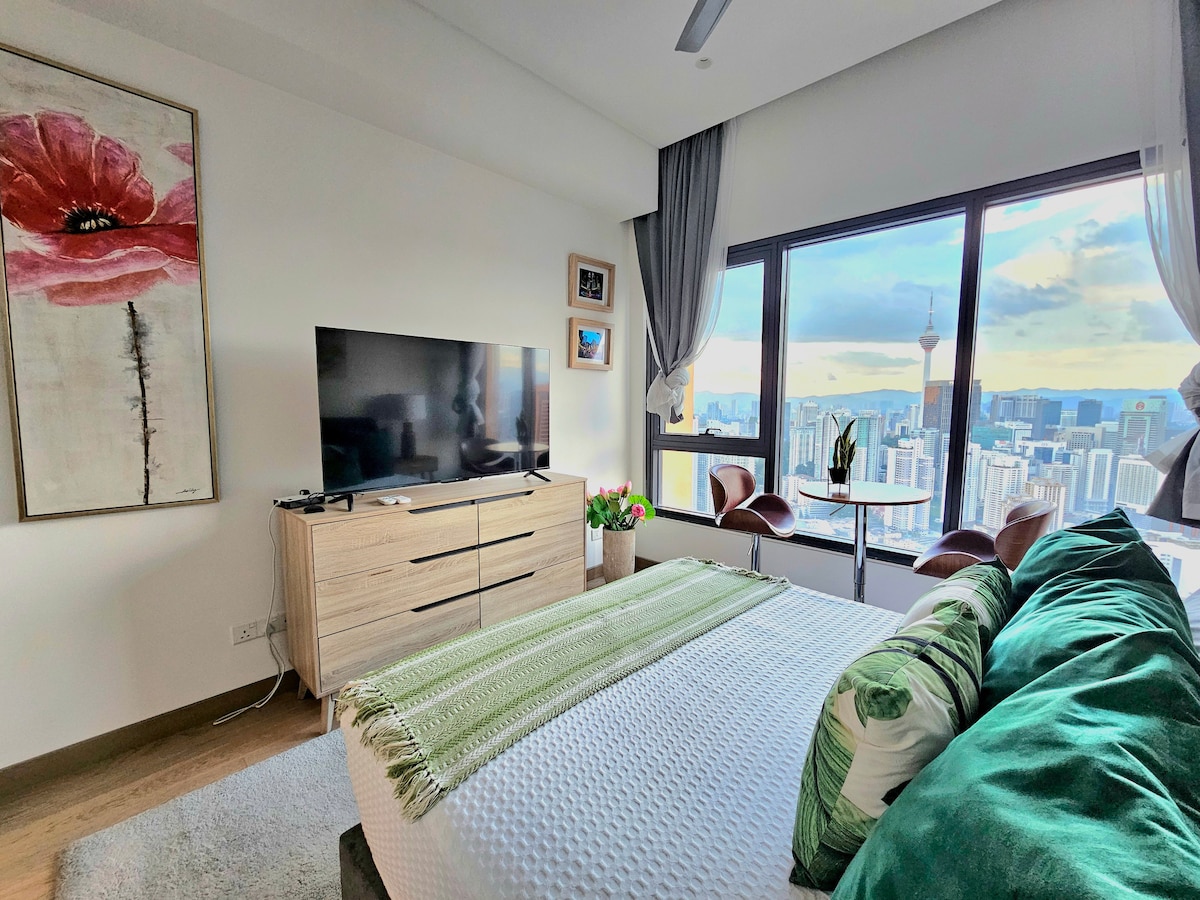 Varför bo på Tropicana Suite at Lucentia Residence - den bästa utsikten över KL - vackert inredd med en rolig anda - centralt beläget -nära offentlig trans - snabbt wifi -2 TV-apparater med Netflix, Apple TV, Prime Video -2 underbara pooler - familjevänlig med spjälsäng och barnstol - gym, biljardbord, grillgropar, piano - Parkering i garage - rekommenderas för 3 personer, max kan sova 5 -LalaPort köpcentrum & WOW UNDERHÅLLNINGSGATAN, livsmedelsbutik, apotek och många restauranger är bifogade - filmteater GSC