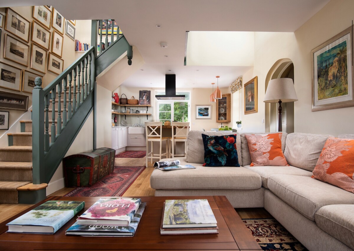 Bright open-plan cottage with mezzanine double bed