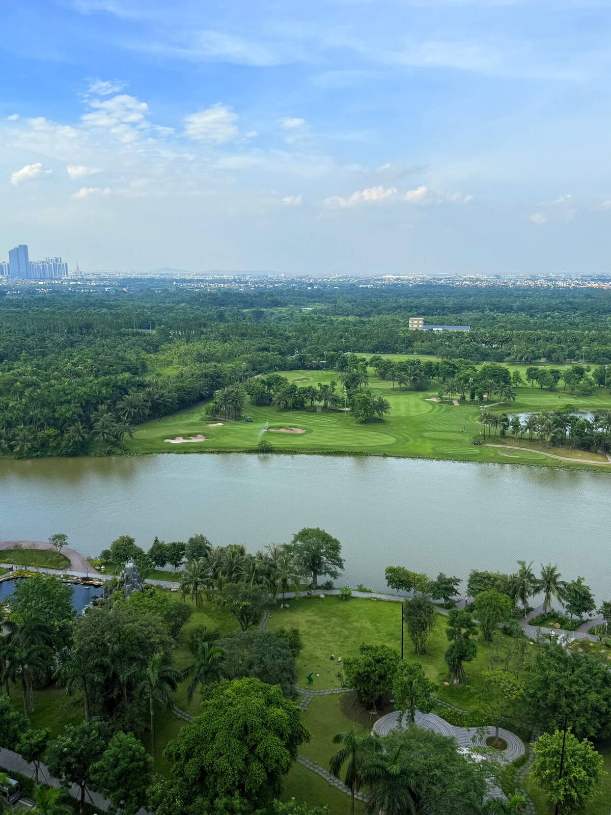 Lyxig lägenhet med 2 sovrum och 2 toaletter, duschkabin och infraröd bastu - på Landmark 2, Swanlake Onsen, i det mest centrala läget i Ecopark - med en svepande utsikt över Swan Lake park, golfbana, anslutning till de omgivande områdena: golfbana, EPGA golfakademi, matgata, stormarknad, restaurang, café längs sjön, gym, spa, bibliotek, arbetsrum, 4-säsongs pool, trädgård, japanskt Koi akvarium...