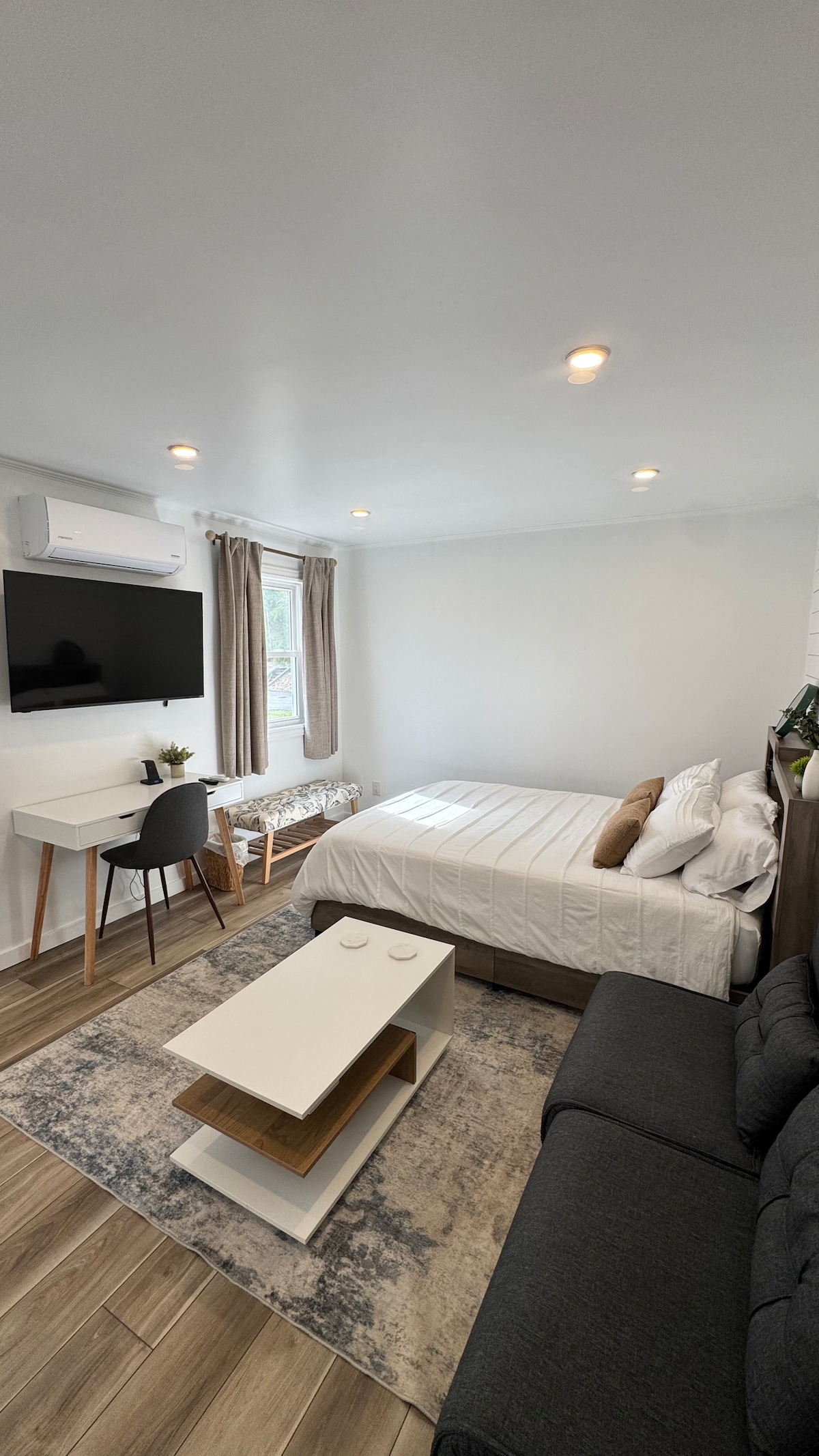 Koppla av, föryngra och fräscha upp dig i din egen privata, rymliga master suite och vardagsrum. Detta vackra, välkomnande utrymme har renoverats 100 % med gäster i åtanke. Lugnt naturligt färgschema, varm belysning och gott om naturligt ljus. Inredd med smakfulla möbler. 15 minuters promenad till centrala historiska Stockade District. Ytterligare regler Inga husdjur, vi har två katter, de kommer att bli mycket stressade av att höra eller lukta ett annat djur i huset. Myndigheterna i Kingston STR Licence #008390
