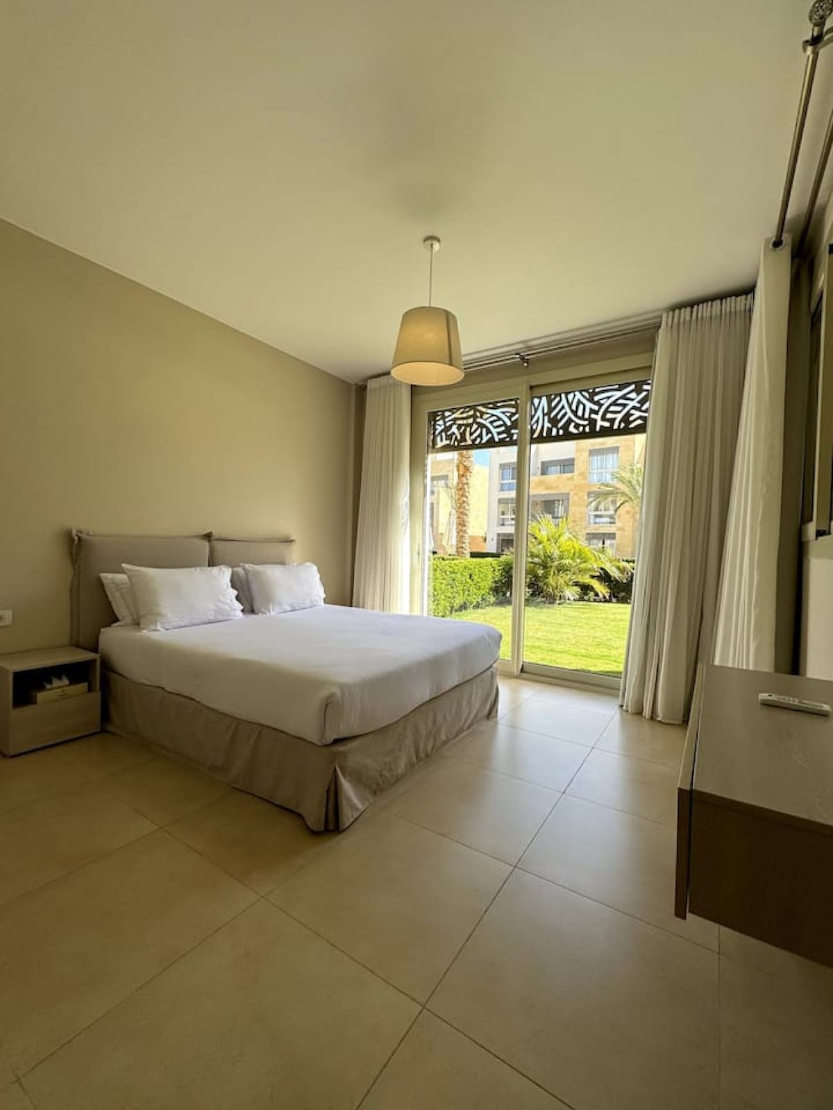 Fully furnished 2 bedroom apartment with 2 balconies with views over the pool. Gym on site . The apartment is supplied with everything for longer stays, full kitchen, hob, washing machine, air fryer, microwave. Air conditioning in every room. Smart TV, Vodafone pay as you go WiFi so you can work from home. 2 value for money Restaurants with great food, also on site shop, hot tubs are all available on request , all 5 minutes away from beautiful El Gouna, only 20 mins from airport.