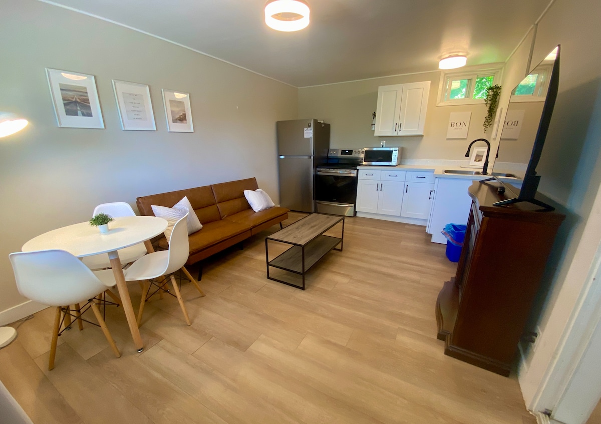 En mysig stuga nära stranden och centrum Bayfield. Ett stenkast bort och du kommer att gå nerför Glass st. beach ingång. En 5 minuters promenad åt andra hållet och du är i vackra centrala Bayfield, där det finns butiker, parker och en fantastisk mängd restauranger att välja mellan. *Obs: det finns en svit på baksidan där jag ofta är in och ut under hela året — jag kommer att använda den och trädgården. Om du inte känner dig bekväm med detta, meddela mig omedelbart.