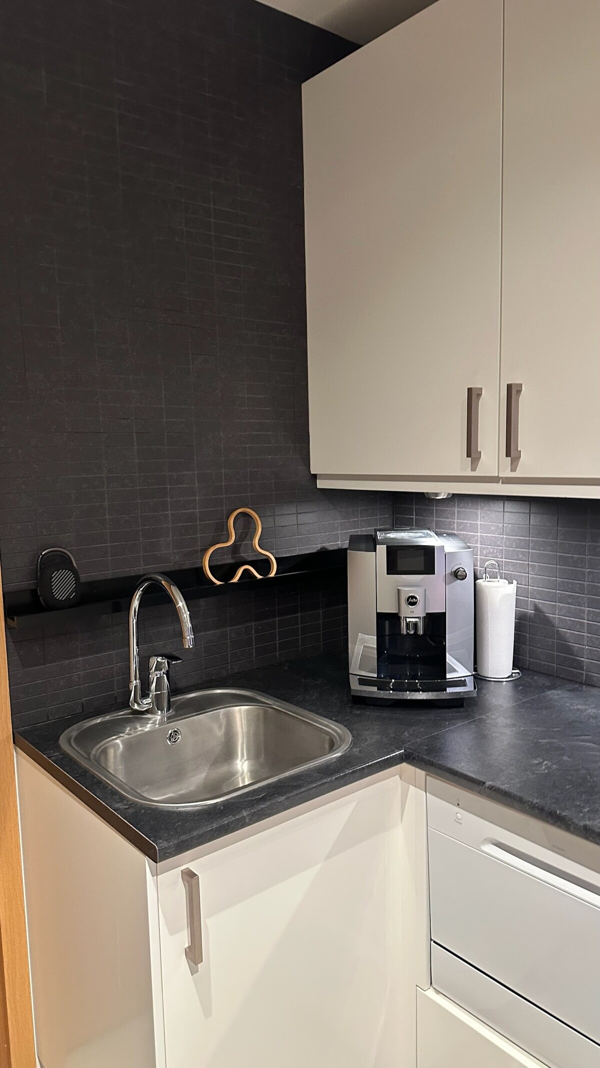 Framsidan med utsikt över havet och bergen för denna rymliga 42 kvm (450 kvm) studio. Njut av ett fullt utrustat kök, en tvättmaskin torktumlare allt-i-ett, ett badrum med en handdukvärmare, en matplats, bekväm soffa, ett dedikerat utrymme för ditt bagage och en kingsize-säng. Den har en egen ingång med en nyckellåda för enkel in- och utcheckning. Studion är utrustad med ett smart hem blå tand ljussystem för att styra lamporna från din säng.