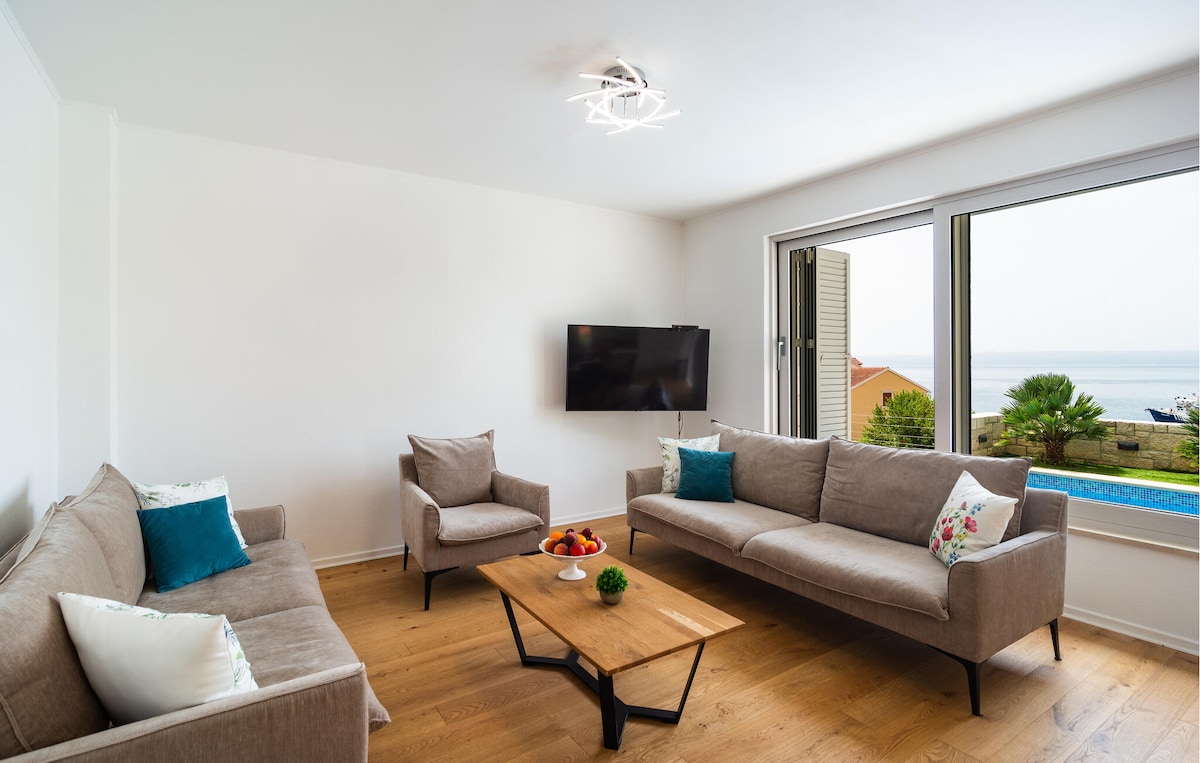 - Stor terrass med havsutsikt - A/C (luftkonditionering) - Värmare - Två sovrum, vart och ett med en dubbelsäng - Två badrum - Bäddsoffa i vardagsrummet (vid behov) - Wifi (optisk) - Tvättservice (gratis) - Smart-tv - Kök - Kaffemaskin - Brödrost - Privat ingång - Husdjur är välkomna (jag har hund) (: - Ingen husdjursavgift