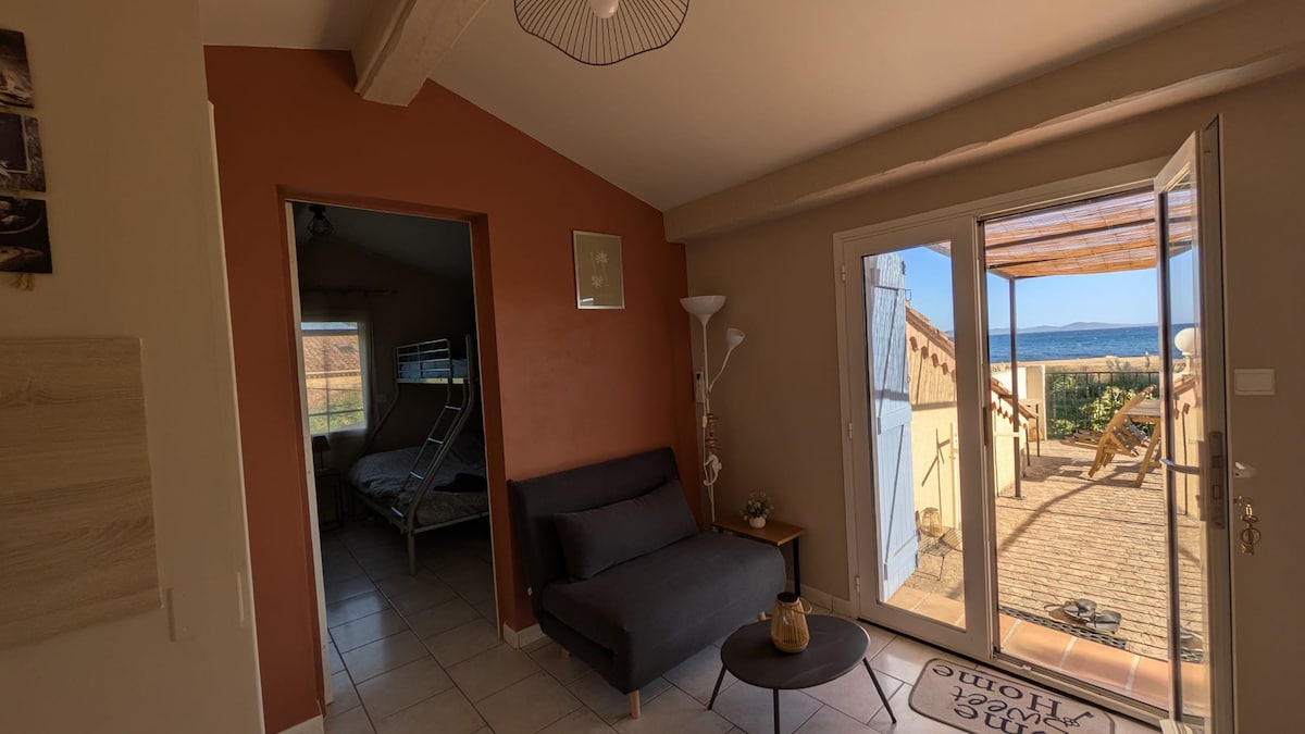 Charmig 2-rumslägenhet vid havet med utsikt över Îles d'Or