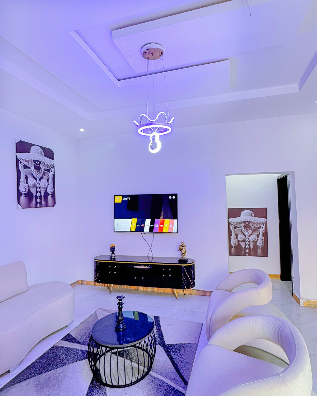 PERFEKT FÖR FÖRETAGSKUNDER OCH FAMILJESEMESTER. FUNKTIONER: Grindad och säker egendom, 24/7 strömförsörjning, lugn, miljö, supersnabbt internet, Ludo, Cheers och Scrabble, egendomens basketplan, egendomens fotbollsplan, egendomens pool, Netflix/YouTube/Dstv, rum med eget badrum, hushållning, dedikerat parkeringsutrymme, utrustat kök, nära till egendomens grind, ljudsystem, balkongutrymme, smakfullt inredda. BELOPP: #120 000 per dag (kort vistelse) #100 000 per dag (lång vistelse)