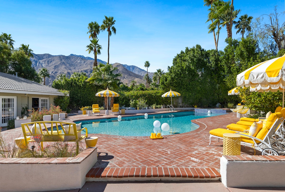 #2495 Escape to a luxurious mid-century home nestled at the base of a mountain, yet close to downtown. Experience serenity with stunning mountain views from the private terrace off of each bedroom. Adorned with original art, this peaceful retreat is a true gem. Walk to restaurants and shopping, surrounded by famous MCM homes. Fully updated with modern furnishings, art, and TV screens in each bedroom. Unwind in the pool and spa, making this your dream getaway!