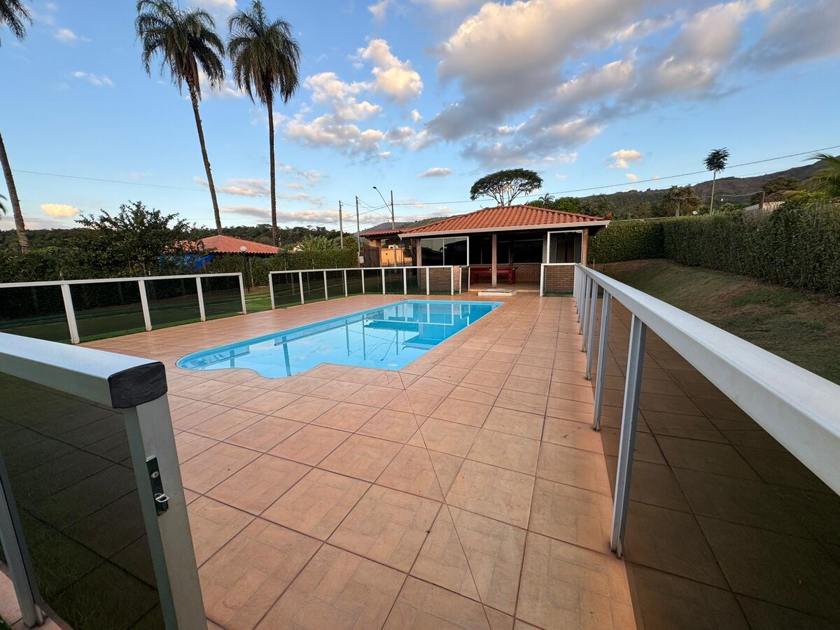 Estamos em um condomínio arborizado, cercado de natureza, aos pés da Serra em Igarapé, MG Casa com 5 Quartos, 2 banheiros, sala ampla com sinuca, sala de TV, cozinha completa com freezer, geladeira, fogão convencional, industrial e a lenha, churrasqueira. Piscina com prainha, ducha e cascata, área gramada e gar. cob. pra 5 carros Perfeito para os amantes da natureza com pista de caminhada arborizada, academia ao ar livre e parquinho para as crianças, além de uma linda cachoeirinha e trilhas