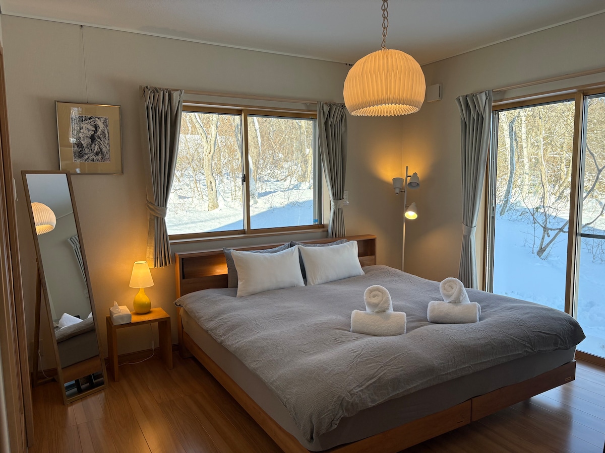 30 sekunder till huvudliften i Ishiuchi Maruyama skidområde! 4 sovrum, 10 bäddar, 200 kvadratmeter, 10 personer, rymligt, privat
