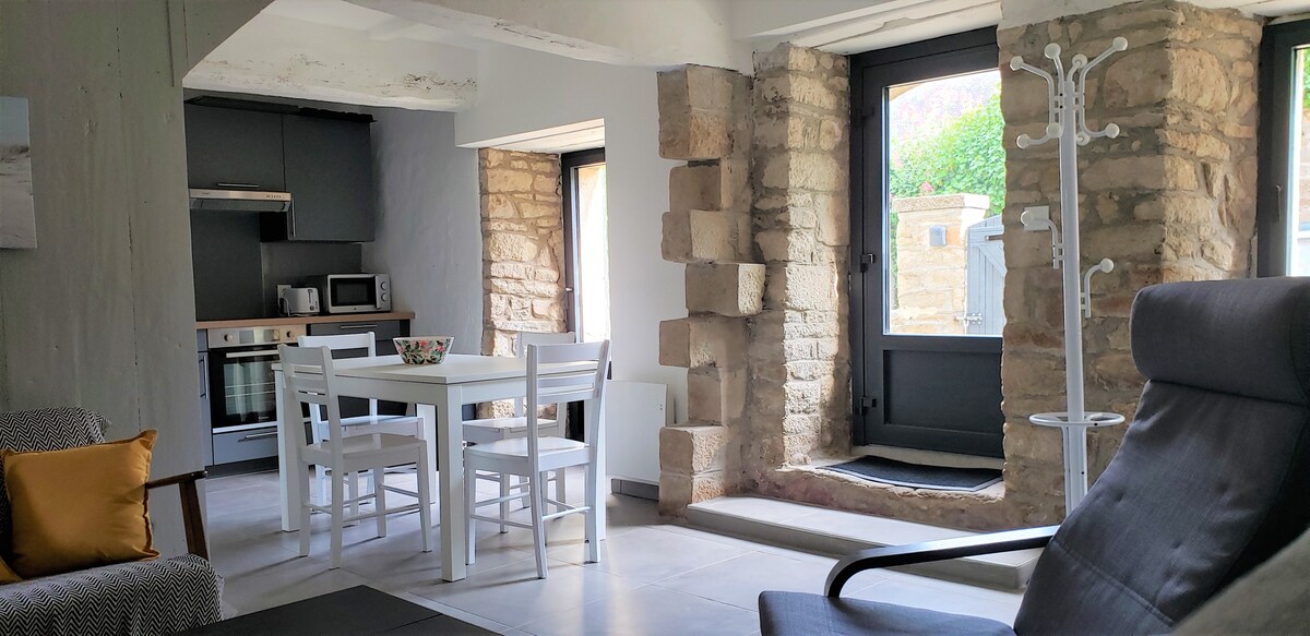 Charmig bostad med en liten terrass där du kan njuta av frukost med utsikt över soluppgången och viken. Du har bara några minuters promenad för att ta ett dopp i havet och njuta av crêperier och restauranger i närheten. För att inte tala om kustleden (24 km runt) där du kan njuta av skönheten i denna pärla i bukten.