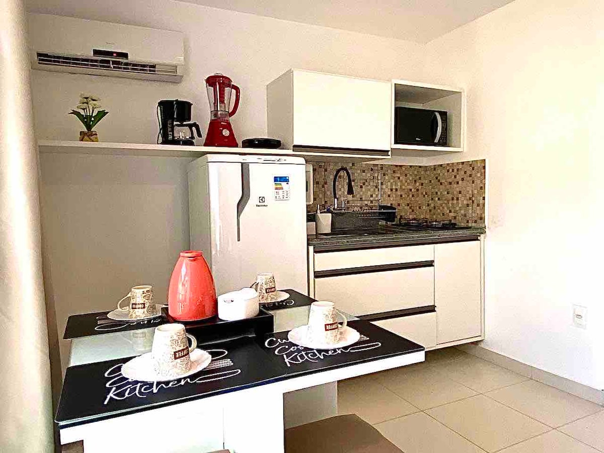 Välkommen till lägenheten på Pousada Lagoa Flat! Vår lägenhet med sovrum och vardagsrum med kök är mysig och modern, perfekt för vänner eller familj på upp till 3 personer. Beläget i en komplett lägenhet med utsikt över trädgården mitt i naturen och nära stranden (500 meter), där ljudet av vågor och doften av havet skapar en avkopplande atmosfär. Njut av komforten med luftkonditionering och det praktiska med ett utrustat kök. Boka nu och upplev oförglömliga stunder!