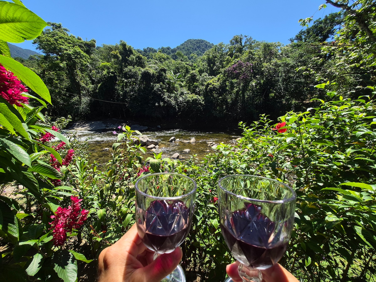 Kom och njut av denna tillflyktsort i Paraty Här kommer du att vara helt ansluten till naturen Med bukolisk arkitektur är huset en tillflyktsort som vetter mot Taquari-floden, med lugnt och kristallklart vatten Att sova och vakna till ljudet av vattnet, lyssna på fåglarna sjunga, eller bara njuta av skönheten i Bocaina bergskedjan, i vår privata trädgård, koppla av i hängmattan, är helt enkelt UNIKT Perfekt för par som söker mycket lugn och ro, och med personlig hjälp från värdarna