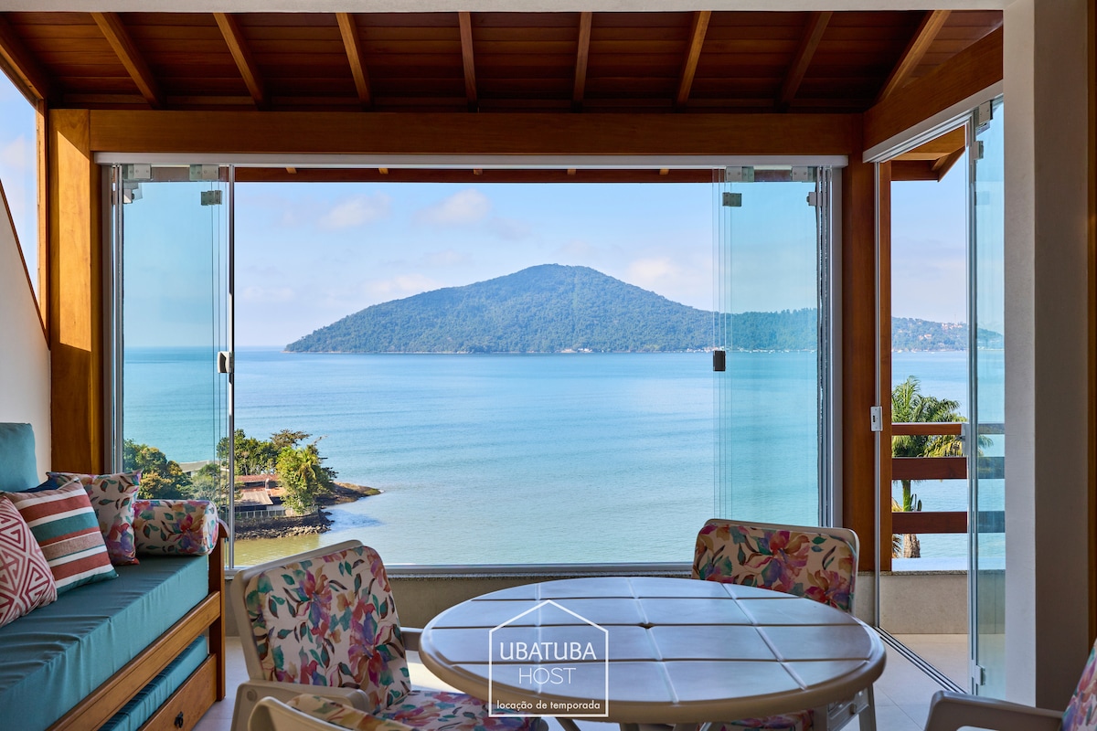 Ny/renoverad lägenhet, med fantastisk havsutsikt i Ubatubas bästa läge. Nära till allt och samtidigt mitt i naturen. 1 sovrum med en dubbelsäng och havsutsikt Integrerat rum med kök Simbassäng i lägenheten. Luftkonditionering 200 Mb snabbt wifi Garageutrymme Reception dygnet runt Det ligger i Prainha do Matarazzo och 5 minuter från Praia do Perequê-Açu. Modernt och med utsikt över paradiset. Eftersom vi ligger nära Café de La Musique kan det förekomma buller på helgerna.
