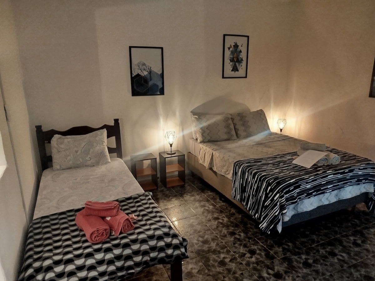 Utmärkt läge, inga kullar. Vi ligger på huvudgatan, mindre än 10 minuter från centrum och några meter från stranden, där de bästa restaurangerna och barerna finns. Rymligt rum perfekt för familjer, har en dubbelsäng och 2 enkelsängar på mezzaninen. Vi erbjuder 2 luftkonditioneringsapparater, wifi, minibar, mikrovågsugn, smörgåsgrill, kaffebryggare, grundläggande redskap, handfat, sängkläder och handdukar, privat badrum, tvättställ och utomhusområde. Lugn, bekväm miljö. Vi garanterar att bilderna är sanna.
