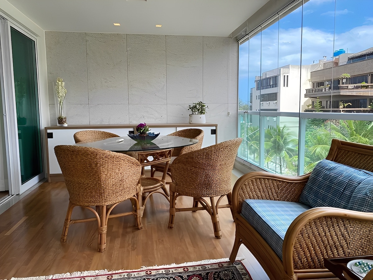 Bostadsområde på hög nivå vid stranden, Barraca do Pepê, Classic Beach Club, K8 Kite Surf och andra. Nära Rua Olegário Maciel finns de mest populära barerna och restaurangerna. Daglig städning, komplett kök, queen size-säng i sovrummet och bäddsoffa i vardagsrummet, badrum och toalett. Kondominium: bastu, pool, hydro. 24-timmars bekvämlighetsutrymme och bistro. Garage, laddare för elbil. Spektakulär balkong med utsikt över Pedra da Gávea och stranden. Tunnelbana 15 minuters promenad bort. Stormarknad och apotek 2 kvarter bort.