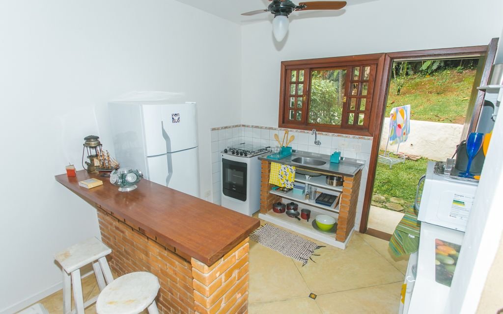 Espaço novinho, lugn och charmig. Svit med dubbelsäng, läslampor och luktande sängkläder. Ett kök med vattenfilter, kocktop två plattor och köksredskap. Mycket trevlig balkong, med litet bord, bekväm hängmatta och pool några steg bort. Allt gjort med tillgivenhet att välkomna människor av god vilja på jakt efter lugn. Serenaten beror på symfonin i Atlantskogen Ilhabela , Uma på de vackraste öarna på den brasilianska kusten.