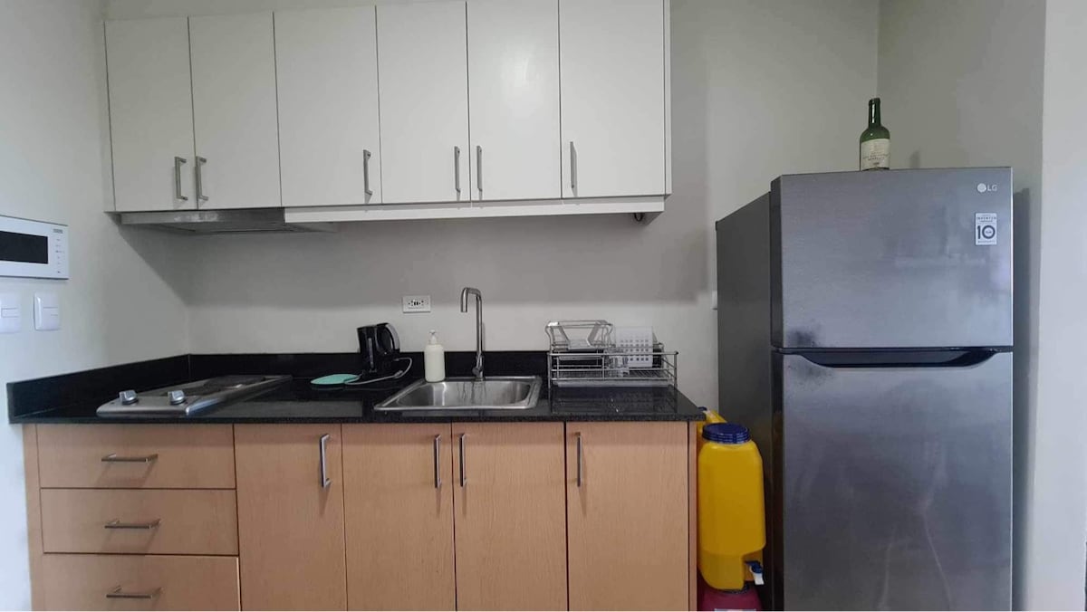Njut av din vistelse i denna mysiga och eleganta studiolägenhet på Mesavirre Garden Residences, belägen i hjärtat av Bacolod City. Lägenheten är utrustad med följande som du kan utnyttja fullt ut! - 50-tums smart-TV med Netflix och HBO GO - WiFi (obegränsat) @300mbps - luftkonditionering - kylskåp - riskokare - elektrisk vattenkokare - elspis - duschvärmare - bidé - köksredskap och porslin - strykjärn - hårtork - tofflor - välkomstpaket - ärlighetsskåp - Kort- och brädspel