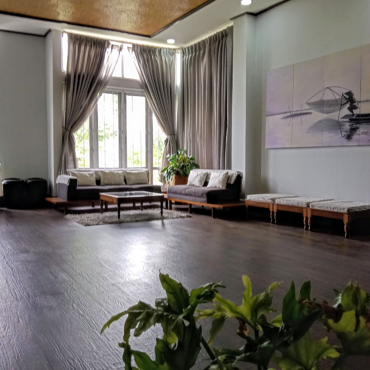 Du eller din familj kommer att älska den eleganta inredningen på detta charmiga gröna ställe med frisk bergsluft. En naturlig luftkonditionering. Öppna det stora fönstret för att se de gröna kullarna eller staden, koppla av på den recliner-soffan och läs din roman eller gör ditt distansarbete. Gå runt i vår ekologiska fruktträdgård och köksträdgård för att plocka något du älskar. Njut av utomhusplatsen morgon eller kväll för att njuta av dina snacks. Ta en vandring, fiska på vårt campus. Beställ din mat från vårt hemkök eller laga mat själv