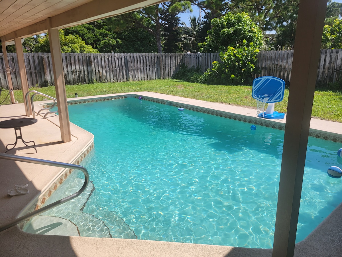 Detta 3BR , 2BA hem Àr ditt kvintessentiella strandnÀra hem. Indian Harbour Beach ligger inbÀddat i ett lugnt, familjevÀnligt grannskap, erbjuder gÀster en fristad frÄn de mer turisttunga omrÄdena, men inom köravstÄnd frÄn allt Space Coast har att erbjuda. Tillbringa dagarna med att njuta av Floridas sol, promenera eller cykla till stranden. Du behöver inte packa dina strandklÀder, vi tÀcker dig. OR, lounge utanför i den 40 fot saltvatten pool pÄ den frodiga, inhÀgnade bakgÄrden.