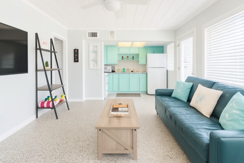 Bright, stylish and quaint. Newly remodeled and furnished to make you feel like you're at your own beach home. Grab your provided beach chair and towel for your short jaunt down to the beach(a football field away) and take a deep breath; let the endless views, waves crashing and sand between your toes take you away. The well appointed kitchen can be used to simply make coffee or a full dinner. Don't feel like cooking? No problem! Indian Rocks Beach offers local coffee, lunch and dinner spots!