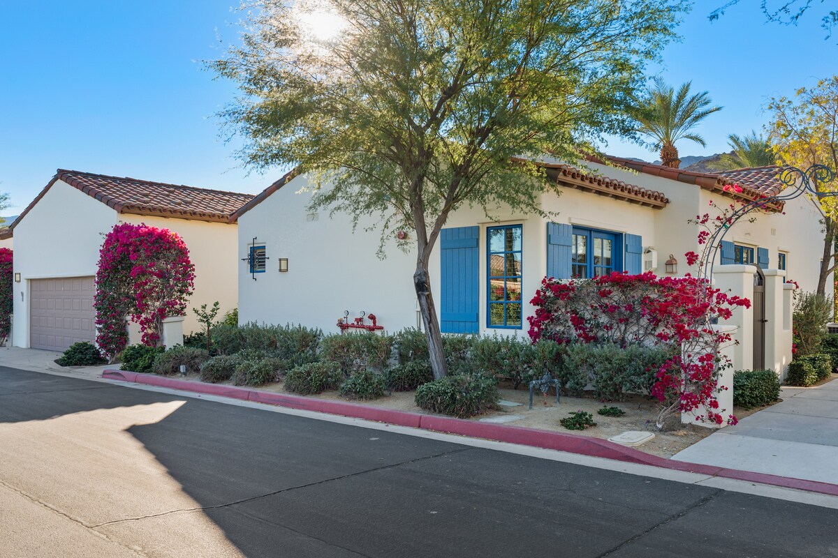 Bungalow Bliss är den perfekta tillflyktsorten i öknen för en weekend getaway eller staycation. Den lyxiga inredningen är professionellt designad och inredd och har anpassat snickeri och handmålade väggmålningar. Beläget på golfbanan, njut av utsikt över bergen och golfbanan medan du kopplar av i en privat uppvärmd saltvattenpool och spa. Njut av 1 Gig WiFi och en 50-amp ChargePoint EV-laddare. Gå till Coachella/Stagecoach, 10 minuters bilresa till La Quinta, 15 minuter till Indian Wells, 30 minuter till Palm Springs, 45 minuter till Joshua Tree