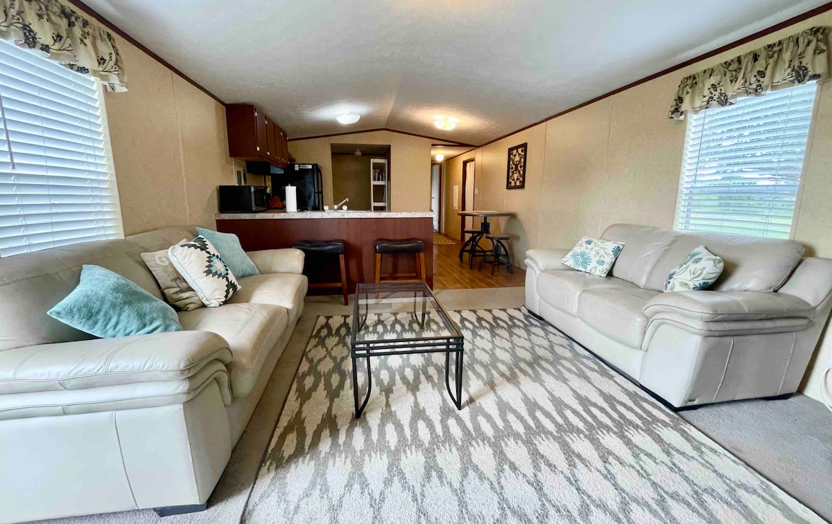 Rökfritt hus. 3 sovrum/2 badrum i ett lugnt grannskap. 1 queen-master, 1 queen-bedrm2, 2 twin-bedrm3, full storlek soffa-inte en utdragbar säng. Platt-TV och takfläktar i LR och varje sovrum. Parkering för 4 fordon. Privat inhägnad bakgård. Incheckning är 15:00 på ankomstdagen – knappsatskod skickas samma dag senast 15:00; utcheckning är 11:00 på avresedagen.