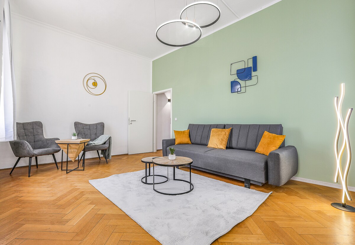 Bo i ett av ett Superior Studio-boende beläget i hjärtat av staden. - Designermöbler (Saba Italia, Perdali med mera..) -Box spring bed from cocoon luxury beds, bed size: 160 x 200 cm, satin sängkläder, sängkläder som i lyxhotell - bekväm soffa, smart TV - matplats och skrivbord - fullt utrustat kök - Tillgång till huset och lägenheten med hjälp av en PIN-KOD med incheckning över webben - Tvättmaskin och torktumlare i källaren via WeWash - veckovis rengöring