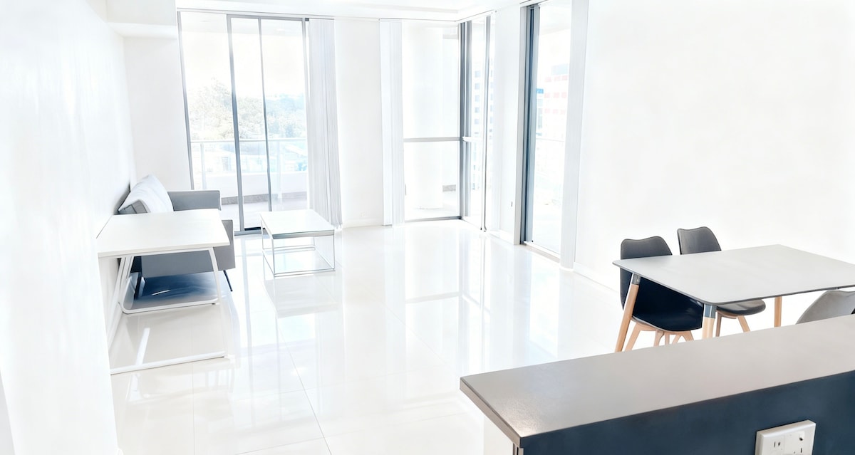 * Flexibel incheckning när som helst på ditt incheckningsdatum. * Sen utcheckning kan vara tillgänglig — tveka inte att kontakta mig. Fly till en vacker, ljusfylld lägenhet på 7:e våningen, omgiven av frodiga parker. Denna moderna pärla erbjuder ett överflöd av naturligt ljus och en lugn atmosfär samtidigt som den ligger nära Sydneys livliga stadskärna. Dra fördel av bekvämligheten med gratis omätad gatuparkering och en snabb 3 minuters promenad till den lokala Woolworths Metro stormarknaden.