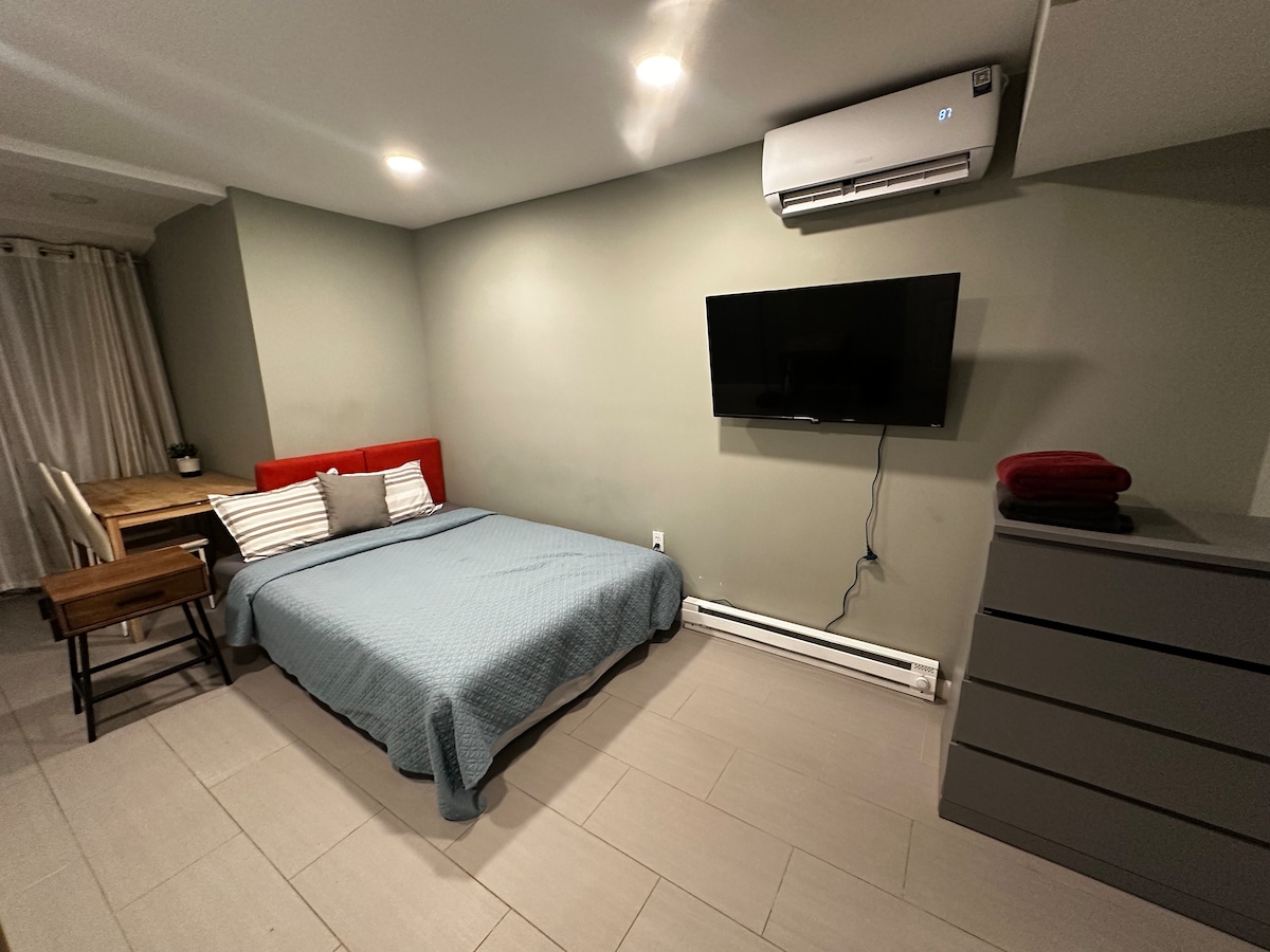 Rymlig studio med egen ingång i Yonkers. 1 mile från Metro North så att du kan nå Grand Central på under 45 minuter! Koppla av i en mysig kingsize-säng, koppla av i sittgruppen eller häng med i arbetet på den dedikerade arbetsytan. Den öppna planlösningen inkluderar en sittgrupp och ett badrum med dusch och badkar för en välkomnande atmosfär. Perfekt för resenärer som söker komfort, stil och snabb tillgång till New York City. **Observera att studion är källaren i ett boende med boende på övervåningen.