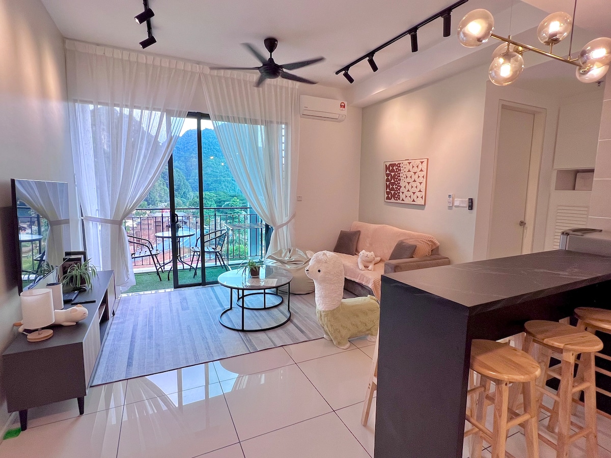 Studioenheten uppfyller dina semesterbehov med dina nära och kära. Gångavstånd till Lost World of Tambun är en enorm temapark i Perak. Enheten är möblerad med en dubbelsäng, wifi, smart-TV och bordsartiklar. Hoppa över din hektiska dag med kort-gateway eller staycation 2,5 timmar från KL eller Penang. De unika bekvämligheterna i vår lägenhet är ONSEN-poolen (varm källa) från naturlig källa. Utöver detta är vår lägenhet utrustad med gym, spelrum (snooker och foosball) och bastu. Packa din väska nu!!