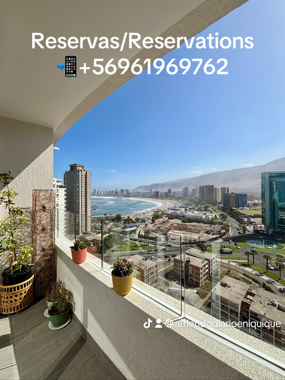 Utsikten över lägenheten är avundsvärd, bekvämligheterna som erbjuds av lägenheten är hög nivå, det ligger nära stormarknader, kasinon, köpcentrum, matbanor, McDonalds, servicentros, restauranger, pubar, meter från huvudstranden Iquique Cavancha, etc.
